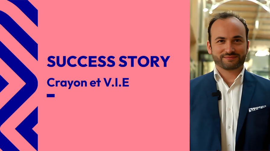 Visuel de l'interview du DRH d'Europe du Sud de la société Crayon qui parle de l'impact du dispositif V.I.E pour son entreprise